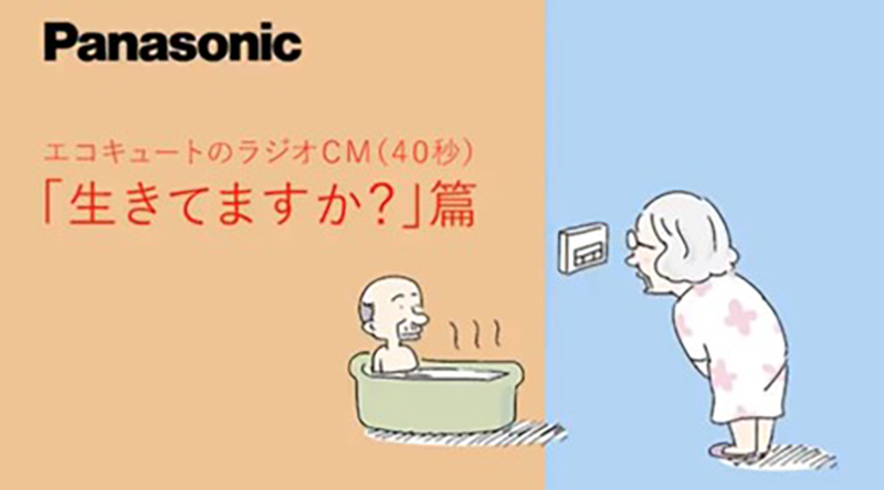 その解決策のひとつが、エコキュートに搭載されている浴室にいる人と会話できるボタンを「生存確認ボタン」として活用していただくこと。このアイデアを世の中に普及させるために、まずはラジオCMを制作してオンエアしました。